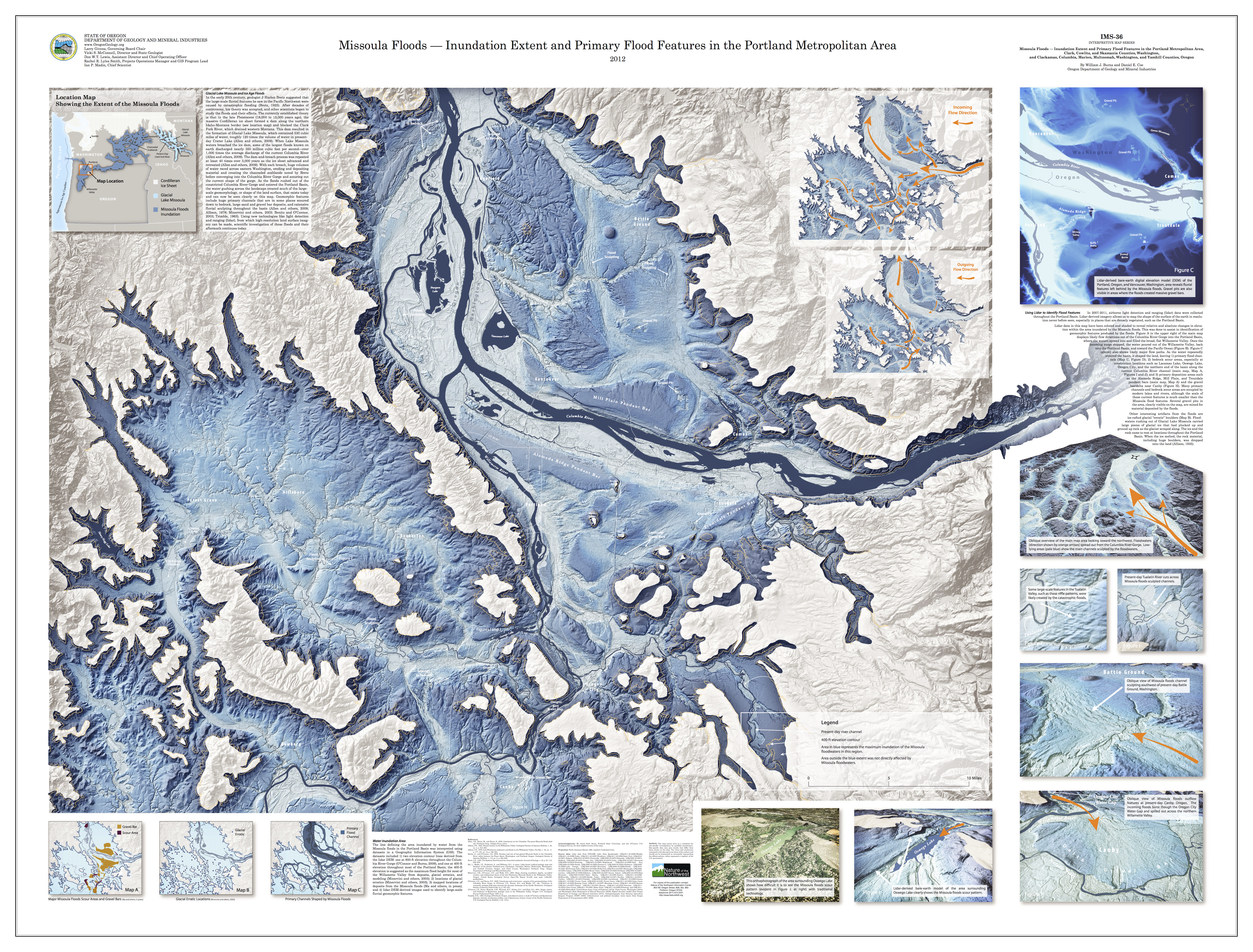 We can see how homes over 450′ elevation were hit less by the Missoula floods. This image contains very interesting information and graphics about the Missoula floods. The data from a LIDAR map of the Portland area gives valuable insight.